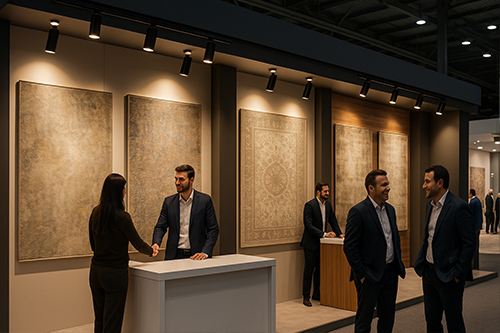 Özellikle halı, tekstil veya dekoratif ürünlerde doğru aydınlatma büyük fark yaratır. Spot ışıklarla ürünleri ön plana çıkarmak, standı daha premium bir görünüme taşır. Ayrıca ürünlerin kolay erişilebilir olması, ziyaretçinin rahat incelemesini sağlar.